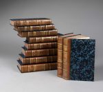 (une coiffe de tête arrachée, fortes mouillures en marge de certains volumes).