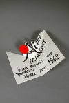 2. Carte de voeux sur papier fort, imprimée en rouge, vert et noir (25,5 × 32,5), comprenant la signature de Calder monogrammée en relief, et un cercle rouge mobile pendu par un fil blanc. Texte des voeux à l'intérieur : " Aimé Maeght vous envoie ses meilleurs voeux pour 1968 ".