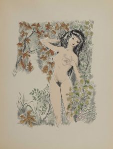 11. SAINTE-CROIX. t'SERSTEVENS (A.) [Ed.]. Jeux et desduits. De François Villon à Mathurin Régnier. Paris, La Belle Page, 1946. In-4, en feuilles, couv. rempliée, chemise et étui éditeur (couverture et dos de la chemise insolés). Édition illustrée de 37 lithographies de G. de Sainte-Croix. Tirage limité à 435 exemplaires : un des 338 sur vélin pur fil Johannot, offert par l'auteur à un ami, Raymond (envoi autographe signé), et enrichi de 6 lithographies libres ne figurant pas dans l'ouvrage, sur divers papiers, dont 5 avec remarques, et une portant une mention autographe signée de l'artiste.