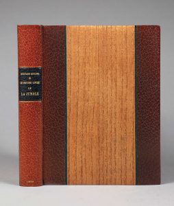 centre des plats couvert d'une feuille façon bois clair, bordé de 2 filets de maroquin vert, tête dorée, couverture, dos et marges conservés [Semet et Plumelle] (dos très légèrement passé).