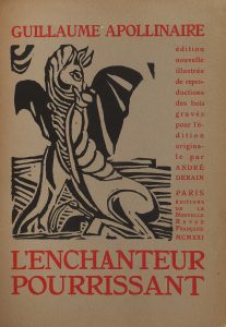 * DERAIN. APOLLINAIRE (Guillaume). L'enchanteur pourrissant. Nouvelle Revue française, 1921 In-8 reliure moderne demi-chagrin noir poli, tête doré (fine rel.), couv. conservées (marges jaunies). Édition originale ornée de bois gravés d'André...