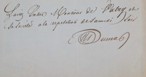 Édition originale. Exemplaire enrichi d'une lettre autographe signée d'Alexandre Dumas (1 page ½ in-8°), datée du 28 août (1860 ?) et où il est question du yacht " Le Monte-Cristo " ; et de deux billets autographes signés du même, qui sont des laissez-passer pour une représentation, l'un pour la comtesse Dash (1804-1872, romancière et collaboratrice de Dumas), l'autre pour " monsieur de Vatry et sa société ".