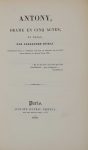 DUMAS (Alexandre). Anthony, drame en cinq actes, en prose représenté pour la première fois sur le théâtre de la Porte Saint-Martin, le mardi 3 mai 1831. Paris, Auffray, 1931. In-8, [4] f., 106 p., [1] f., plein chagrin noir ancien, dos orné à...