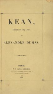 DUMAS (Alexandre). Kean. Comédie en cinq actes. Paris, Barba, 1836. In-8, demi-maroquin à longs grains et à coins vert foncé, dos lisse orné d'un jeu de filets, auteur et titre dorés, filet doré aux plats, couverture et dos conservés, marges...