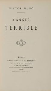 HUGO (Victor). L'année terrible. Paris, Michel Lévy frères, 1872. In-8, maroquin grenat, dos à 5 nerfs, auteur, titre et date dorés, double filet doré aux coupes, dentelle intérieure, tête dorée, couverture et dos conservés, non rogné....