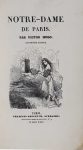Édition originale de Notre-Dame de Paris, avec mention fictive de quatrième édition. L'édition a été tirée à 1100 exemplaires répartis artificiellement en quatre tranches. Les titres des 2e, 3e et 4e tranches du tirage ont été imprimés avec une mention d'édition et le nom de l'auteur, ainsi que leurs faux-titres, avec une indication de tomaison. L'ouvrage est orné de deux vignettes de titre de Tony Johannot gravées sur bois par Porret.