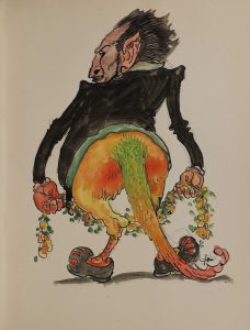 Exemplaire enrichi d'un dessin original signé en couleur au crayon, gouache et encre.