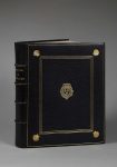 avec armes royales en médaillon central et coquilles en fleurons angulaires, le tout doré, filet doré aux coupes, contreplats doublés, doubles gardes de satin azur et de papier marbré doré, tête dorée, couv. et dos conservés, chemise et étui assortis [Jacqueline Bonvoisin].