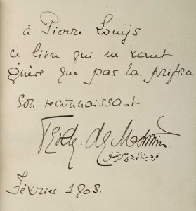 Envoi autographe signé de Ferdinand de Martino à Pierre Lous : " ce livre qui ne vaut guère que par sa préface, son reconnaissant Ferdinand de Martino, Février 1903 ".