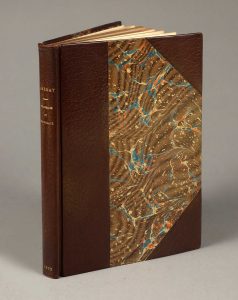 MÉRAT (Albert). Chansons et madrigaux : chansons, madrigaux, camées parisiens. Paris, Lemerre, 1902. In-18, demi-maroquin havane à la Bradel et à coins, auteur, titre et date dorés au dos, tête dorée, couvertures, dos et larges témoins...