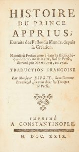 [BEAUCHAMP (Pierre-François Godard de)] . Histoire du prince Apprius, Extraite des Fastes du Monde, depuis sa Création. Manuscrit Persan trouvé dans la Bibliothèque de Schah-Hussain, Roi de Perse, détrôné par Mamouth, en 1722. Par Monsieur...