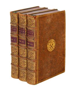 Infimes travaux de vers au dos du premier volume, accroc à la coiffe de tête du 3e volume. Rousseurs éparses.