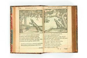 FAERNO (Gabriele). Centum fabulae ex antiquis auctoribus delectae, et a Gabriele Faerno cremonensi carminibus explicatae. Anvers : Christophe Plantin, 1567. ─ [Suivi de] : • ÉSOPE. Aesopi phrygis et aliorum fabulae : Elegantissimi Iconibus...