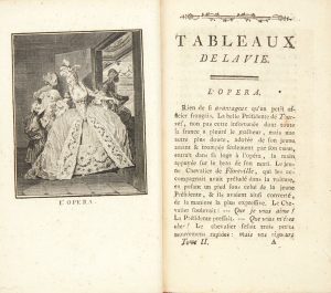 RÉTIF DE LA BRETONNE (Nicolas-Edme). Tableaux de la vie ou les moeurs du dix-huitième siècle. Neuwied sur le Rhin : Société typographique : Strasbourg : J. C. Treuttel, [1790]. — 2 volumes in-18, 138 x 85 : (4 ff.), 180 pp., 9 planches :...