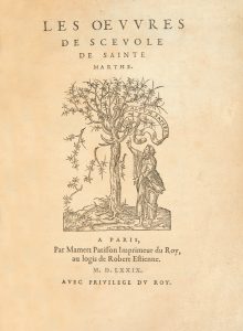 SAINTE-MARTHE (Scévole de). Les OEuvres de Scevole de Sainte Marthe. Paris : Mamert Patisson, 1579. — In-4, 240 x 157 : (4 ff.), 181 ff.