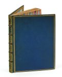Maroquin bleu canard, triple filet doré en encadrement sur les plats, dos à nerfs richement orné, dentelle dorée intérieure, tranches dorées sur marbrures (Lortic).