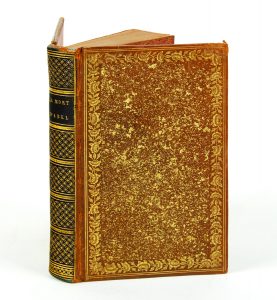 Veau havane, plats sablés d'or et bordés d'un double filet doré et d'une roulette florale dorée : dos lisse recouvert de maroquin noir richement orné, roulette dorée intérieure, tranches dorées (reliure de l' époque).
