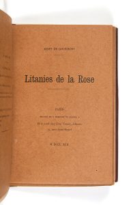 GOURMONT (Remy de). Litanies de la Rose. Paris : Mercure de France, 1892. — In-16, 195 x 138 : 29 pp., (1 f.), couverture imprimée.