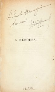 HUYSMANS (Joris-Karl). À rebours. Paris : G. Charpentier et Cie, 1884. — In-12, 182 x 114 : (2 ff.), 294 pp., (1 f. blanc), couverture imprimée.