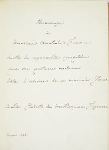 Hommage à monsieur Anatole France dont la rayonnante sympathie pour mes parterres nocturnes hâte l' éclosion de ces musicales flores.