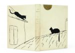 Vélin ivoire, décor mosaïqué de maroquin noir et or sur les plats et dos lisse représentant un chat sur les toits d'une maison, double listel de maroquin noir et filets dorés en bordure intérieure, doublures et gardes de soie brochée grise, tête dorée, non rogné, couvertures et dos conservés, étui (Louise Lévêque).
