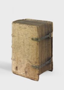Bel exemplaire en peau de truie estampée sur ais de bois complète de ses fermoirs.