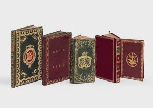 Bel exemplaire en maroquin vert orné d'un important décor doré.
