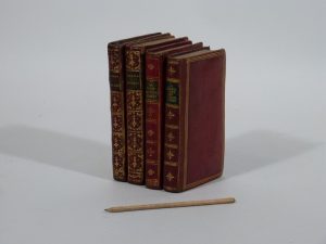 [ÉTRENNES]. Ensemble 4 volumes in-24, maroquin rouge, triple filet doré, dos lisse orné, pièce de titre de maroquin vert, tranches dorées, fermoirs de maroquin et crayon. (Reliure de l'époque).