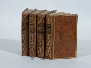 ROUSSEAU (Jean-Jacques). Émile, ou de l'Éducation. Londres [Paris], s.n. [Cazin], 1780-1781. 4 volumes in-18, veau moucheté, triple filet doré d'encadrement, dos lisse orné, filet sur les coupes, roulette intérieure, tranches dorées (Reliure...