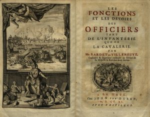 BARDET DE VILLENEUVE. Cours de la science militaire, à l'usage de l'infanterie, de la cavalerie, de l'artillerie, du génie et de la marine. Tome premier, contenant les fonctions et les devoirs des officiers. La Haye, Jean Van Duren, 1740. In-8,...