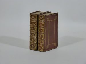 2 volumes in-12, maroquin rouge, décor à la Du Seuil, dos orné, roulette sur les coupes, tranches dorées (Reliure de l'époque).