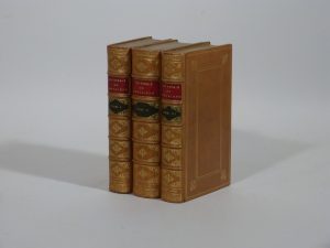 3 volumes petit in-12, veau blond, encadrement à la Du Seuil, dos orné, dentelle intérieure, tranches dorées sur marbrure (Raparlier).