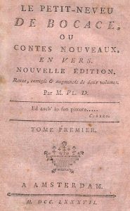 Ce recueil de contes dans le goût de Boccace avait paru en un volume à Amsterdam (1777), puis à Avignon (1781).