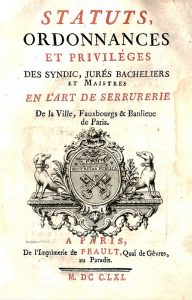 À la suite de ces statuts figurent des arrêts du Conseil du roi et du Parlement de Paris en faveur des maîtres serruriers contre les faux-monnayeurs et « faux fabricateurs », ou encore contre les abus des maîtres taillandiers, coffretiers, malletiers, etc.