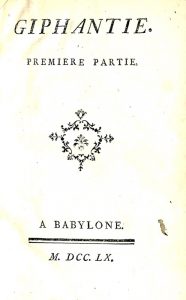 [TIPHAIGNE DE LA ROCHE (Charles-François)]. Giphantie. À Babylone, 1760. 2 parties en un volume in-8, veau marbré, dos orné, tranches rouges (Reliure de l’époque).