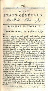 Cette dernière feuille figure parmi les plus importantes pour connaître la première phase de la Révolution, dans la mesure où elle rapporte tous les débats de l'Assemblée Nationale, mais sa structure est souvent d'une grande complexité, tant en raison de ses propres changements de titre, que des réimpressions partielles, ou encore des collections qui mettent bout à bout (comme ici dans notre exemplaire) les volumes du périodique de Le Hodey de Saultchevreuil avec ceux d'un autre journal logographique imprimé en province, ou qui contrefont la feuille de Le Hodey.