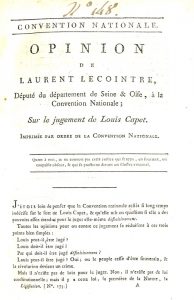- XIII. LECOINTRE (Laurent) : Opinion sur le jugement de Louis Capet (Seine-et-Oise, 4 pp.). - XIV. LE MARECHAL (Denis) : Déclaration et opinions sur les trois questions relatives au jugement de Louis XVI (Eure, 4 pp.). - XV. LEQUINIO (Joseph-Marie) : Opinion sur ladéfense de Louis XVI (11 pp.).