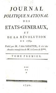 [RÉVOLUTION]. Journal politique national des Etats-Généraux, et de la Révolution de 1789. Publié par M. l'Abbé Sabatier, & tiré des Annales manuscrites de M. le Comte de R***. S.l. [Paris], 1790. 2 tomes en un volume in-8, demi-basane...