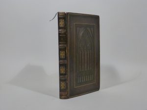 [LANGLÉ (Ferdinand) et Émile MORICE]. L’Historial du Jongleur. Chroniques et Légendes françaises. Paris, Librairie de Firmin Didot, 1829. In-8, veau prune, filets dorés et roulette à froid, décor à froid à la cathédrale, dos orné,...