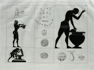 PANOFKA (Theodor Sigismund). Recherches sur les véritables noms des vases grecs, et sur leurs différens usages, d'après les auteurs et les monumens anciens. Paris, Debure frères, Rey et Gravier, Leipzig, Weigel, 1829. In-folio, cartonnage de...
