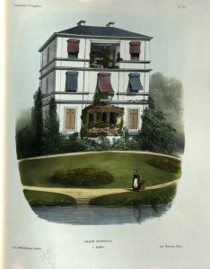 Édition originale, ornée d'une page de titre et complet des 100 planches de lithographies en couleurs par Victor Petit illustrant les différents types d'habitation bourgeoises des campagnes françaises.