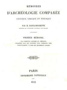 Chronologiquement, ce "premier" mémoire succède au "second" qui était paru dès 1846. Consécutivement au renvoi de Raoul-Rochette de la Bibliothèque Nationale pour faute d'orléanisme, il n'y eut pas d'autre livraison dans cette collection.