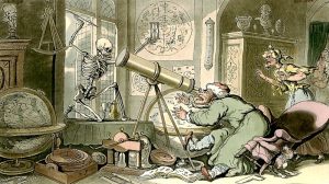 Album réunissant 60 gravures en couleurs par le caricaturiste Thomas Rowlandson (1756-1827). Les vignettes sont tirées de trois ouvrages anglais illustrés par ce dernier et publiés par Ackermann à Londres, The Vicar of Wakefield, The Tour of Doctor Syntax through London et The English Dance of Death.