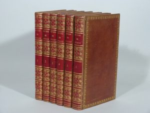 STERNE (Laurence). Œuvres complètes. Paris, Jean-François Bastien, an XI – 1803. 6 volumes in-8, veau fauve estampé d'un treillage à froid, dentelle dorée en encadrement, dos lisse de maroquin rouge orné de fleurons dorés sur fond...