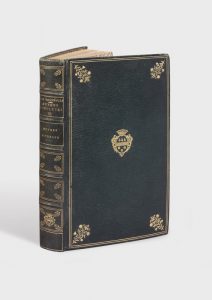 De la bibliothèque Christian Clérel de Tocqueville (1862-1924), un des régents de la Banque de France, avec ex-libris et armes dorées sur les plats et en queue du dos.