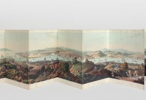 ♦ Rarissime panorama gravé à l'aquatinte par John Clark d'après les dessins de J. Pitman, et rehaussé en couleurs à la main.