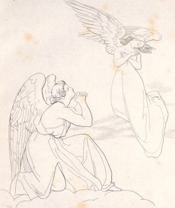 ZIEGLER (Jules). Éloa, la soeur des anges. Compositions au trait sur le poème d'A. de Vigny. S.l. [Paris], 1833. In-folio, demi-veau vert avec coins de vélin vert, dos lisse orné de filets et guirlandes dorés (Reliure de l’époque).