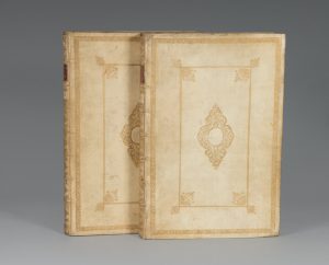 BOILEAU-DESPRÉAUX (Nicolas). [...] seuqirotsih snemessicrialcé sed cevA.[...] Œuvres. À Amsterdam, Chez David Mortier, 1718. 2 volumes in-folio, vélin ivoire, double encadrement de filets et roulette dentelée dorés ornant les plats, fleurons...