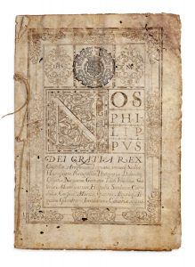 [ESPAGNE]. [VALENCIA]. [AYORA]. Concession d'armoiries en faveur de Jaime Orti de la ville d'Ayora (Valence) accordées par le Roi Philippe IV d'Espagne [Privilegio miltar en persona de Iayme Orti de la Villa de Ayora en el Reino de Valençia].
