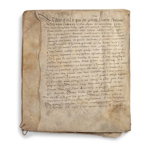 [LOIRET]. [ORLÉANS]. Acte de vente d'une maison à Estienne Souplex, cédée par Gervaise Thibault et Perrette Dallibert. En français, acte sur parchemin, 7 ff. Orléans, daté 1572.